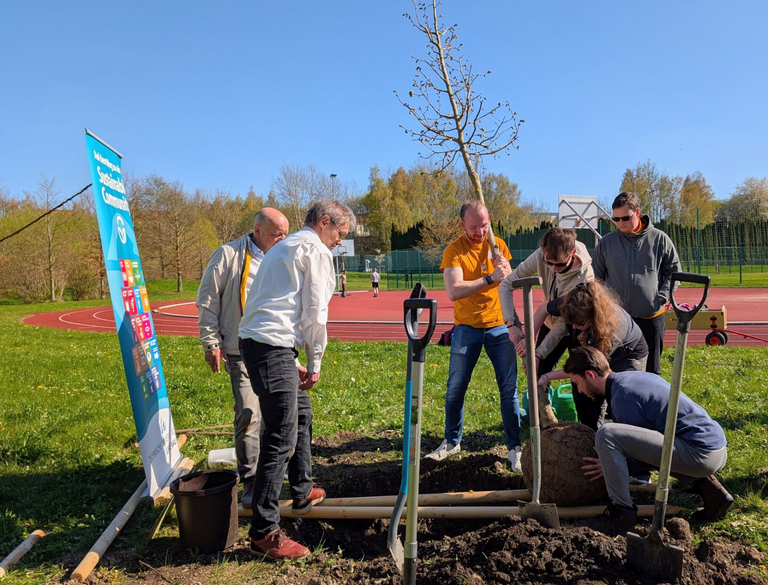 Ein sichtbares Zeichen für langfristiges Engagement auf dem Campus setzte die gemeinsame Baumpflanzaktion rund um den Tag der Erde am 22. April: Bei schönstem Wetter versammelten sich Tänzerinnen und Tänzer der Oriana Bauchtanzgruppe, Sängerinnen und Sänger des DaChors im KuKo e.V. und Mitglieder der Nachhaltigkeits-AG des Studierendenrats gemeinsam mit weiteren Gästen am Universitätssportplatz, um durch die Pflanzung einer Sommerlinde und einer Trauerweide zur ökologischen Vielfalt auf dem Campus beizutragen.
